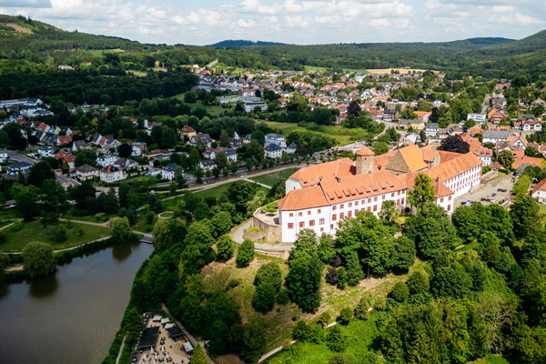 Luftaufnahme vom Iburger Schloss mit Blick auf den Teutoburger Wald. Tourismusgesellschaft Osnabrücker Land mbH Foto: Christoph Steinweg