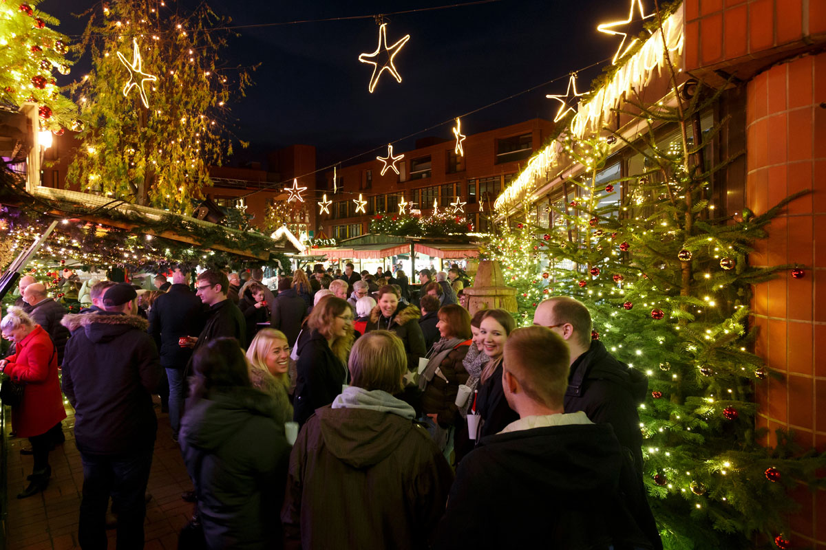Etwa 30 Kilometer nordwestlich von Münster liegt die Stadt Greven, die mit ihrem eigenen Weihnachtsmarkt begeistert. Besonders hervorzuheben ist der Weihnachtsmarkt auf dem historischen Marktplatz, wo regionale Anbieter ihre Produkte präsentieren. Höhepunkt ist der große Weihnachtsbaum, der mit zahlreichen Lichtern geschmückt ist und die Vorfreude auf das Fest spürbar macht. Hier kann man lokale Spezialitäten genießen, wie etwa Hausmacher Wurst und selbstgebackene Plätzchen. Außerdem gibt es zahlreiche Attraktionen für Kinder, darunter eine kleine Eisenbahn und ein Streichelzoo, der besonders bei den jüngsten Besuchern beliebt ist.